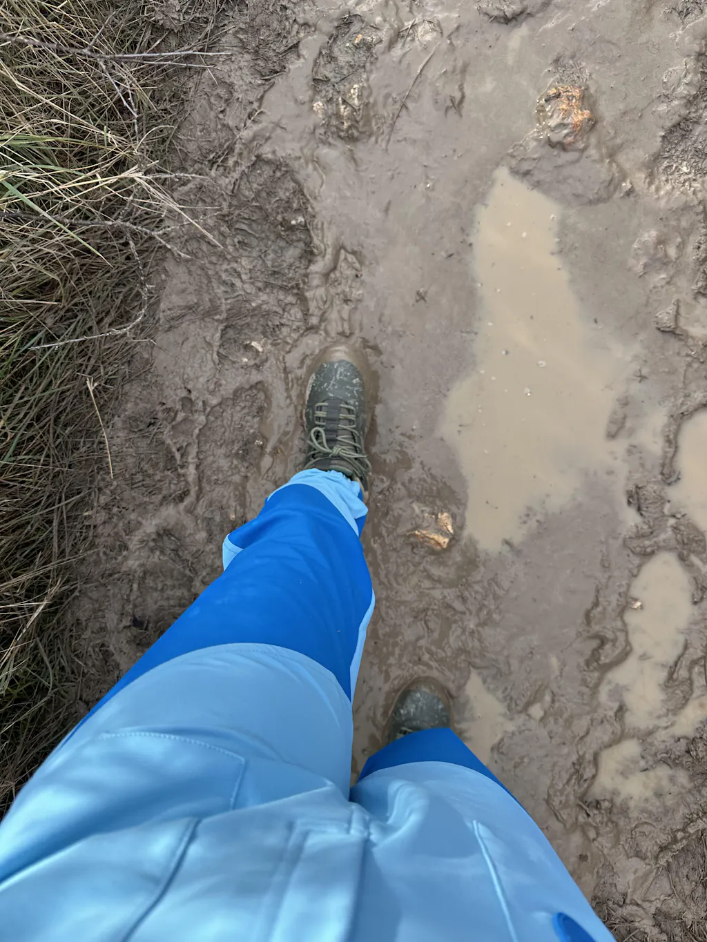 These stylish high waist pants are comfortable and designed for the woman’s figure, sitting comfortably on the hips, easy to move around in and durable, ideal for hiking in the hills or mountains. They have plenty of pockets at the sides to zip up your valuables and easy access pockets at the front without zips. There are reinforced waterproof panels on the knee and seat for scrabbling and kneeling/sitting in wet and muddy terrain. The pants are coated in DWR to keep you dry on rainy days. They have Velcro around the ankles if you want to cover over your boots.