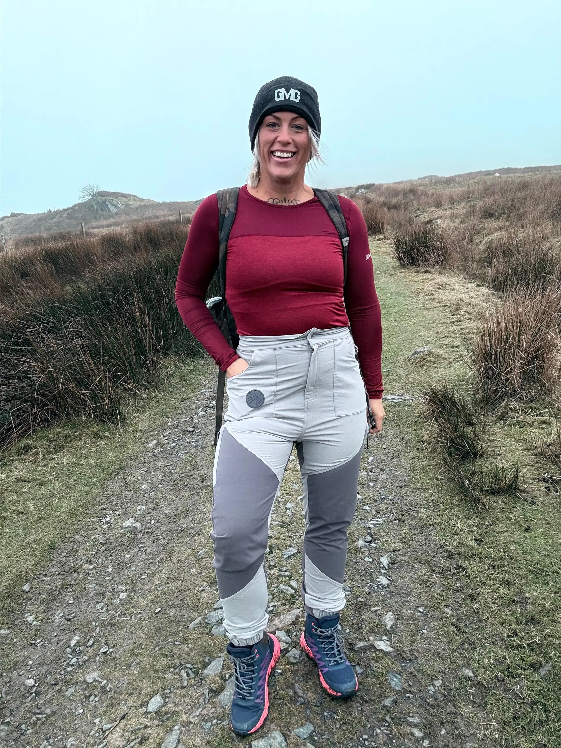 These stylish high waist pants are comfortable and designed for the woman’s figure, sitting comfortably on the hips, easy to move around in and durable, ideal for hiking in the hills or mountains. They have plenty of pockets at the sides to zip up your valuables and easy access pockets at the front without zips. There are reinforced water resistant panels on the knee and seat for scrabbling and kneeling/sitting in wet and muddy terrain. The pants are coated in DWR to keep you dry on rainy days. They have Velcro around the ankles if you want to cover over your boots.